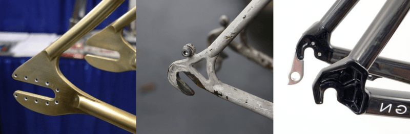 Si vous avez trouvé un cadre à votre taille, vérifiez un détail primordial: les pattes arrières ! En effet,il faut que celles ci soient longues et profondes plutôt que courte, c’est très souvent le cas des anciens vélo de course. Si vous avez des pattes horizontales et que la roue se met par l’arrière c’est que le cadre est un cadre de piste c’est donc encore mieux ! Cette histoire de pattes est importante pour régler la tension de la chaine, il faut reculer ou avancer la roue arrière pour ajuster la tension de la chaine, c’est donc indispensable d’avoir un certain « jeu »… Voici une photo résumant la compatibilité des pattes du cadre: