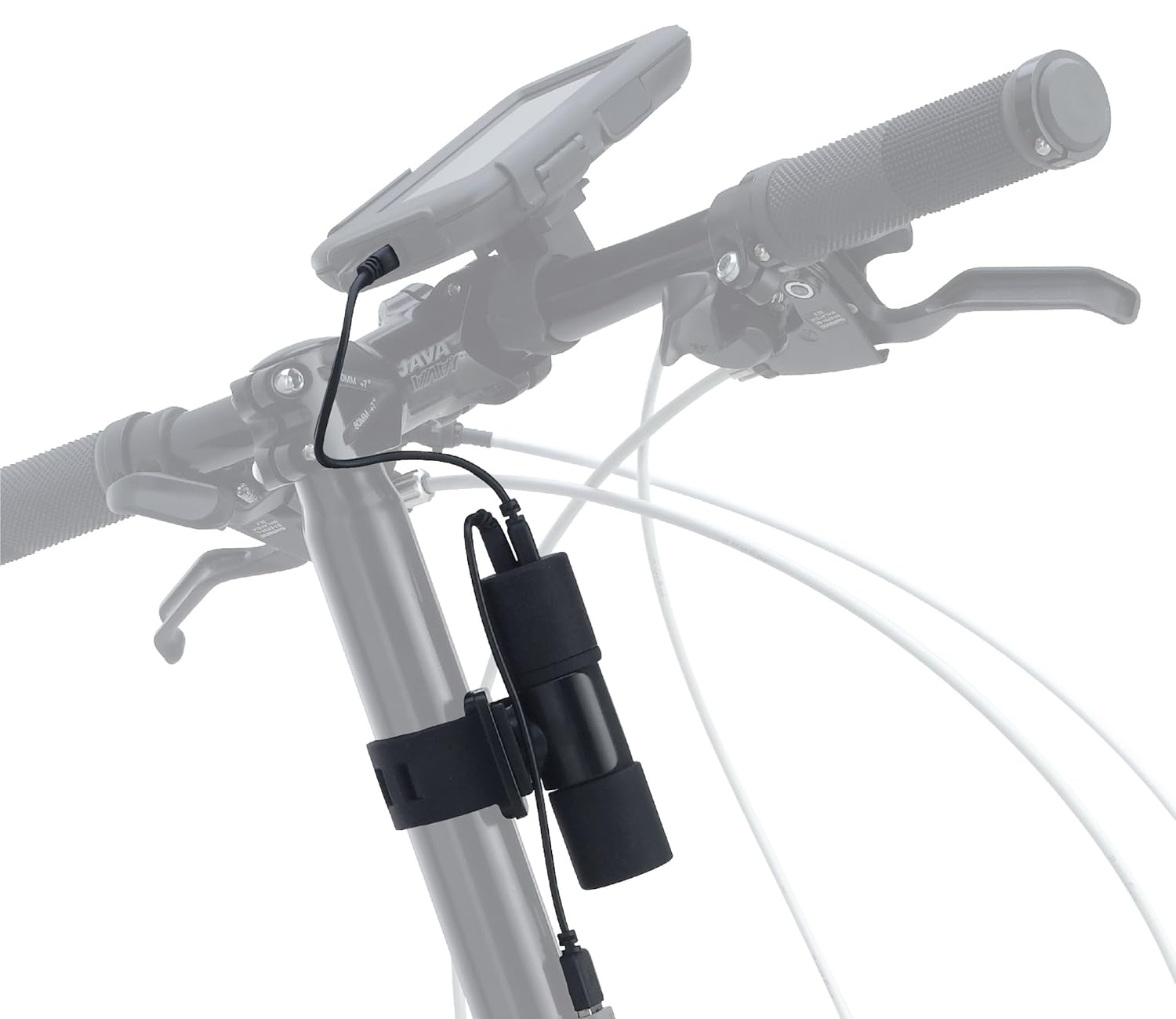 Laisser tourner des applis qui utilisent le GPS en permanence peut avoir de lourde conséquence sur l’autonomie de l’iPhone. Résultat, lorsque l’on part pour plusieurs heures, l’iPhone a parfois du mal à arriver à bon port. C’est là qu’intervient cette petite batterie qui, grâce à un petit support, peut se fixer aisément sur le cadre. C’est l’alliée idéale du quad lock vu ci-dessus.